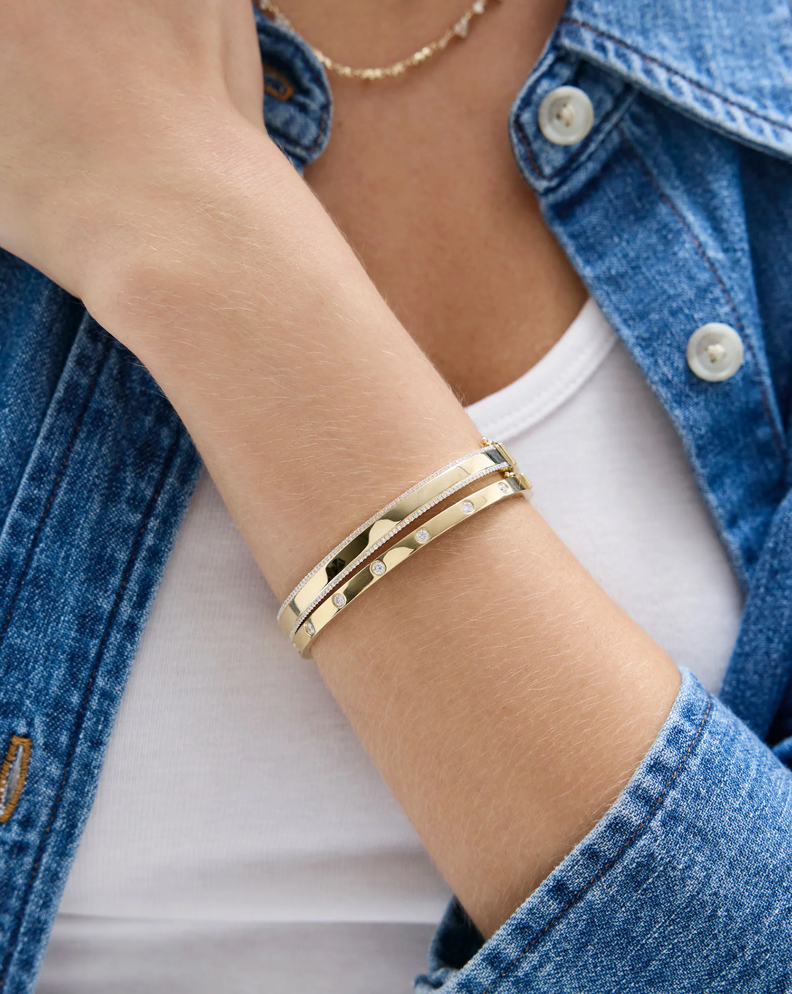 - Gold bangle bracelet with diamonds
